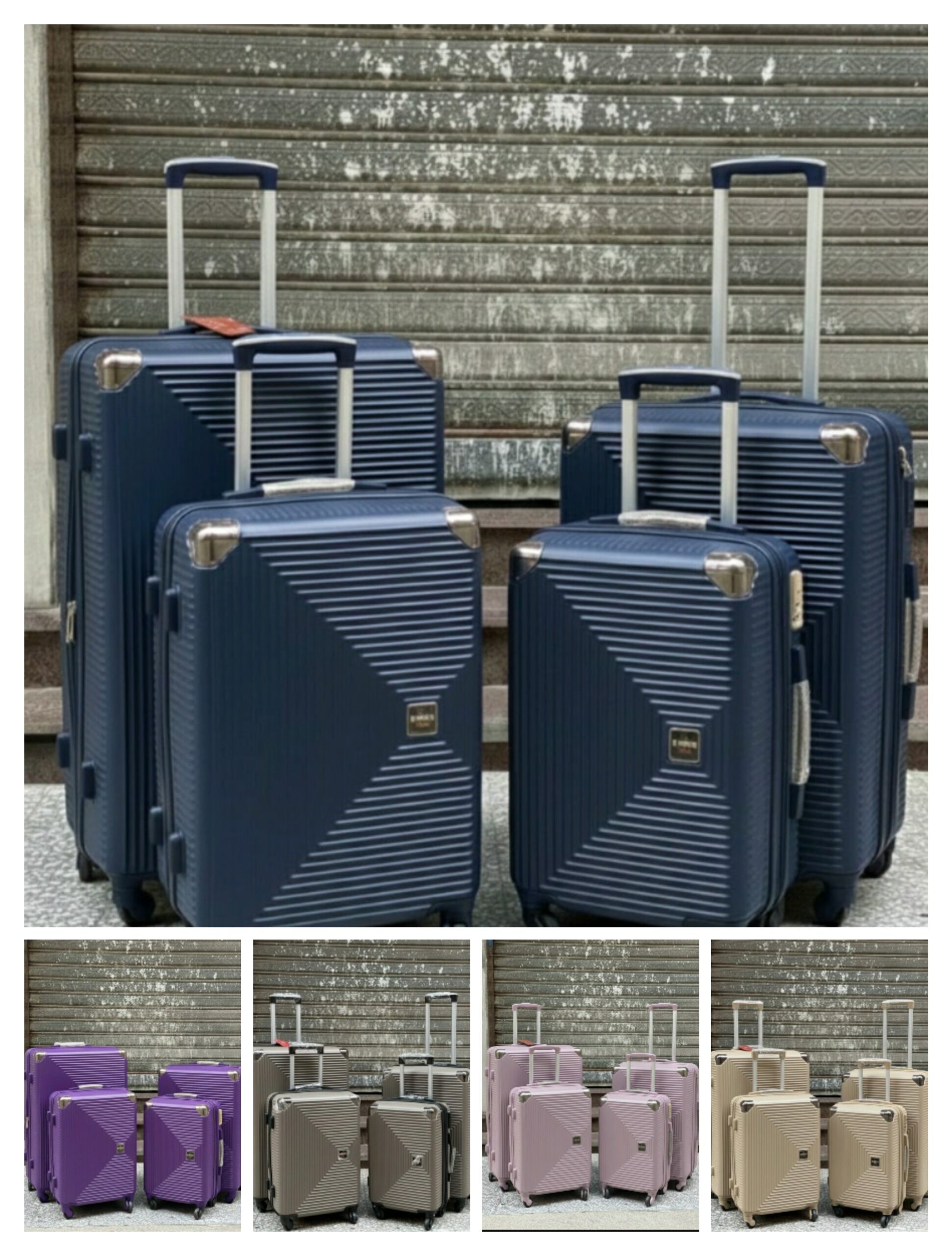 شنط سفر ترولي طقم 4 قطع مقاسات مختلفة، صناعة مصرية، خامة قوية مقاومة للصدمات، عجلات 360 درجة، تقسيم داخلي عملي، وسوست متينة. مناسبة للسفر والاستخدام المتكرر.