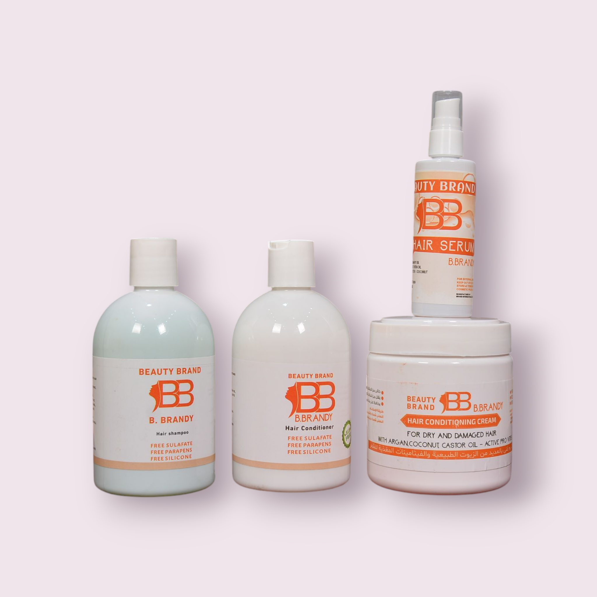 مجموعة شعر متكاملة شامبو وبلسم وحمام كريم وسيروم خالى من المواد الكيميائية يصلح للشعر المفرود أو المعالج
